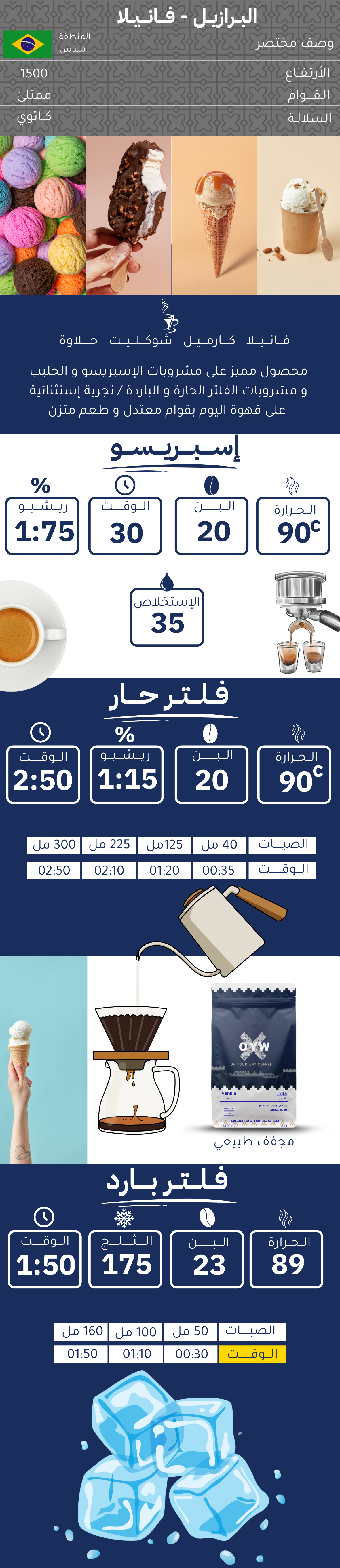 قهوة برازيلية أصلية، مع نكهة فانيليا ناعمة